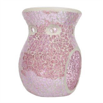 Ice Pink Lustre Crackle Mosaic Oil Burner. Also known as Wax Melt Burner, Wax Melt Warmer or Tart Burner.